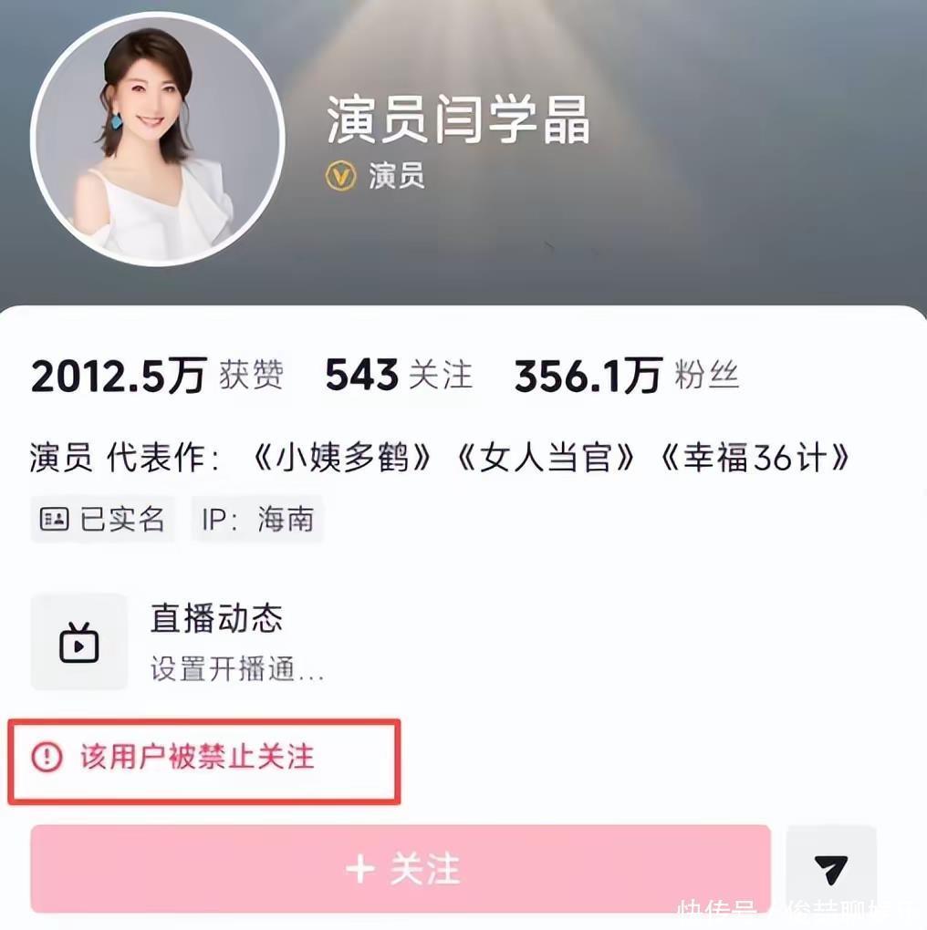 阅读此文之前,麻烦您点击一下“关注”,既方便您进行讨论和分享,又能给您带来不一样的参与感,感谢您的支持。文|火说火前言你说这事儿闹的。本来以为闫学晶老师低调几天,等风头过去就完了。谁知道,1号这天,眼尖的网友发现,她的短视频账号出大问题了——直接被禁止关注了!
